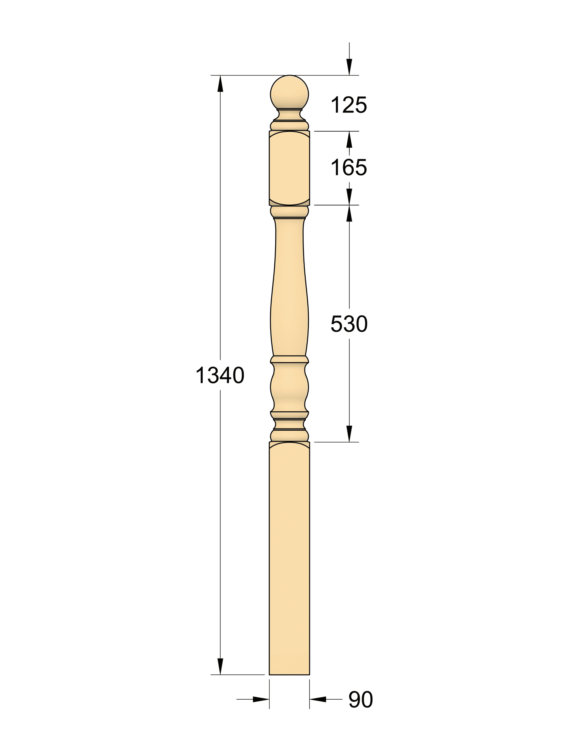 Newel Post – Colonial PINE Ball Top