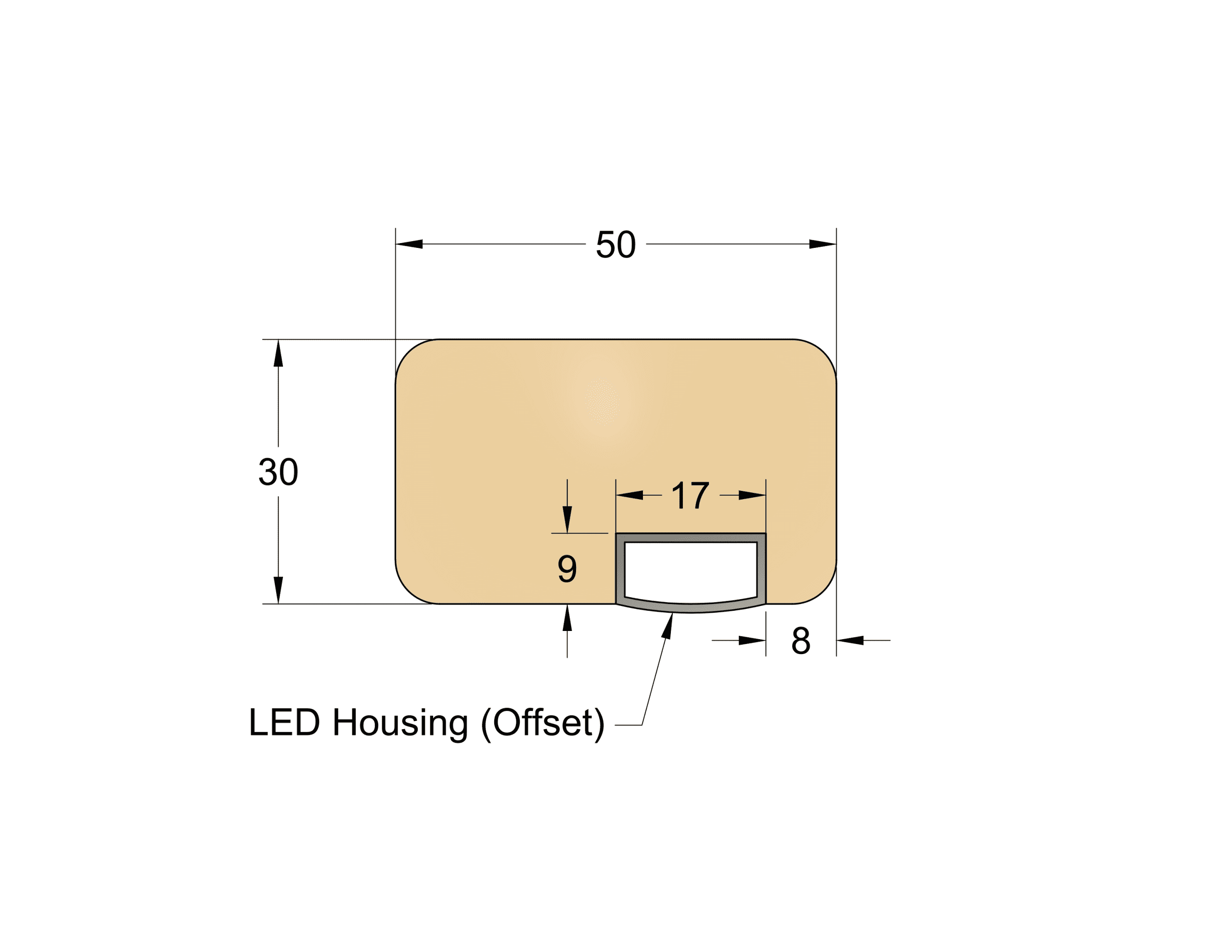 This handrail can be rebated with housing to accommodate LED lighting strips (LED rebating and housing are additional costs, Please enquire for pricing)